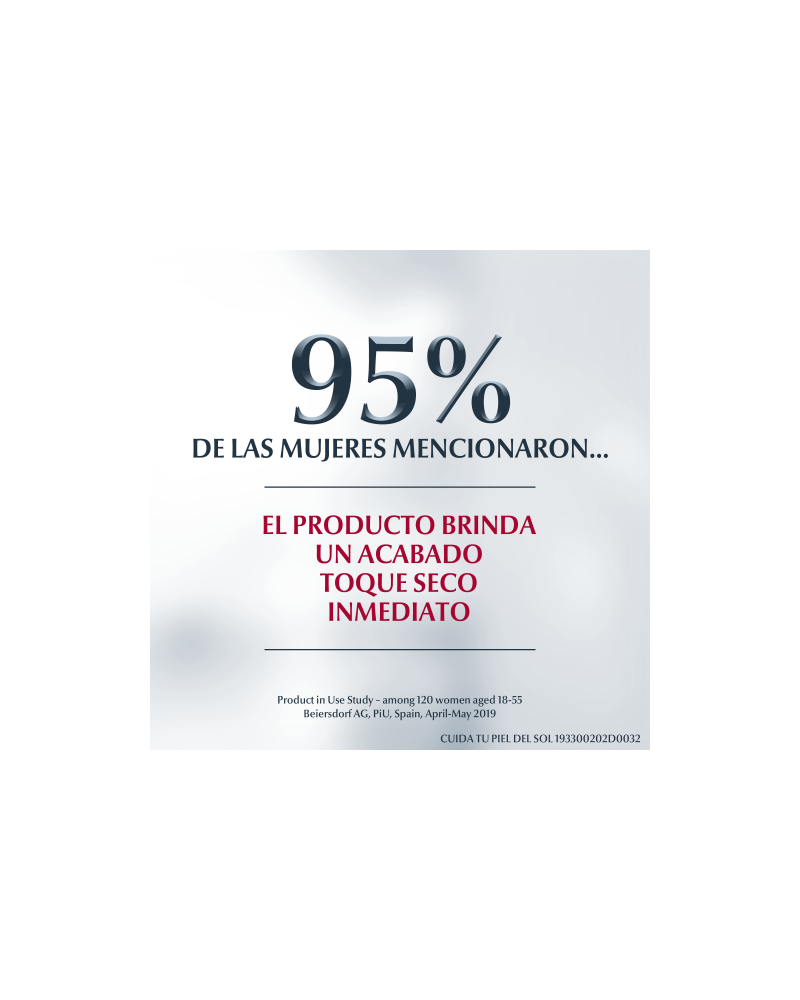 Beneficios Previene el fotoenvejecimiento Anti-arena: Baja probabilidad de que la arena se pegue a la piel. Extra resistente al agua Ofrece FPS 50 y protección UVA Ideal para piel sensible, grasa o con tendencia al acné