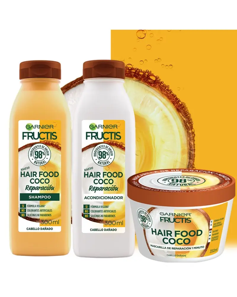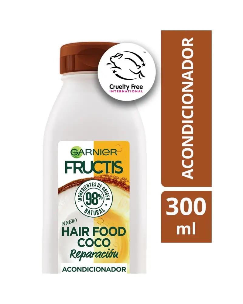 ¿Pelo dañado? Fructis Hair Food Coco para reparar tu pelo. Este acondicionador tiene 97% de ingredientes de origen natural y fórmula vegana. No tiene siliconas, ni parabenos, ni colorantes artificiales. Además, es Cruelty Free.Si seguís el método Curly, este acondicionador es apto. ¿Cómo usarlo? Después de usar el shampoo, aplicá sobre el pelo húmedo, de medios a puntas. Dejá actuar y enjuagá. Completá la rutina usando el shampoo diariamente y la crema de tratamiento una vez por semana.Todos los productos de Fructis son reciclables. Enjuagalos, separalos y dejalos en un contenedor/campana verde o punto verde. TIP: si podés, sacales la etiqueta.Green Beauty, nuestro compromiso hacia una belleza sustentable.