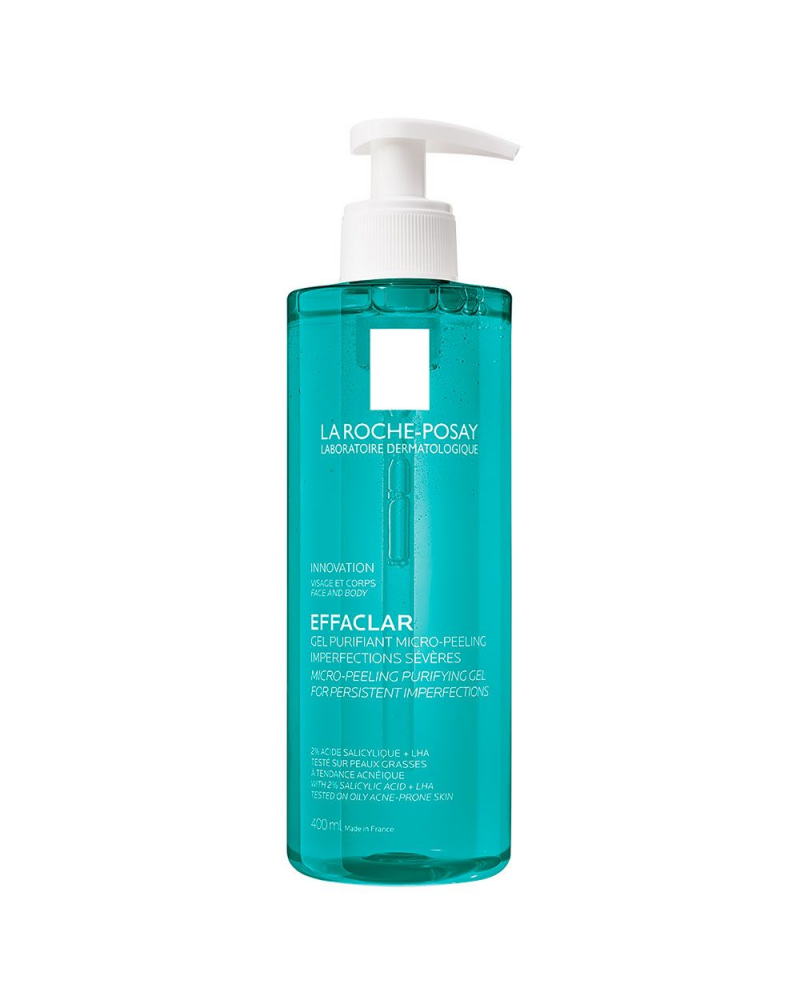 EFFACLAR Gel Purificante Micro-exfoliante favorece la eliminación de las células muertas sin irritar y ayuda a eliminar las impurezas y el exceso de sebo desobstruyendo los poros en profundidad. El primer limpiador de La Roche-Posay formulado con agentes micro-exfoliantes y purificantes. Actúa en las imperfecciones persistentes y el sebo y aporta gran confort a las pieles con tendencia acenica, incluso en el cuerpo. Fórmula testada bajo control dermatológico.Hipoalergénico. pH fisiológico. Testado en pieles grasas con tendencia acneica. Hipoalergénico.