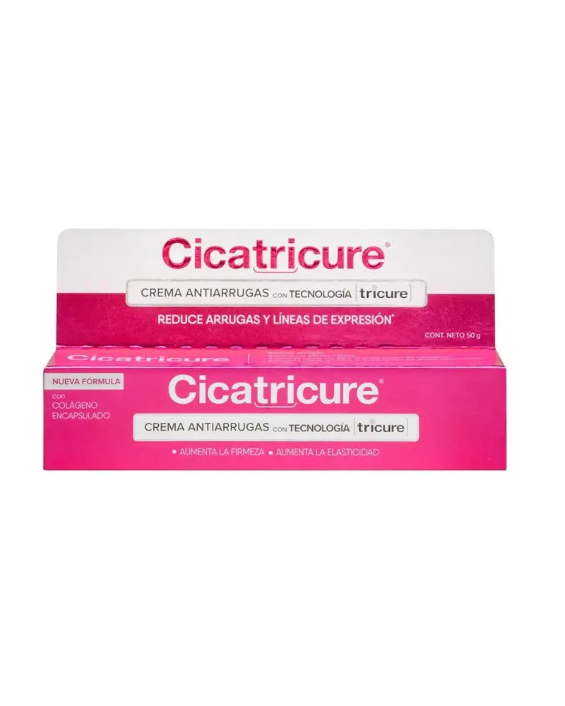 Cicatricure Crema antiedad con Tecnología Tricure. Esta nueva tecnología, actúa en profundidad gracias a su composición con colágeno encapsulado en una liberación controlada y sostenida de los activos, permitiendo tratar la piel de adentro hacia afuera. PRESENTACION: 50 Gr