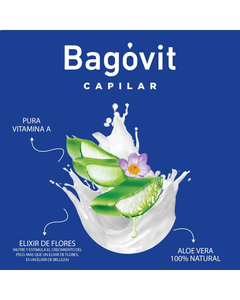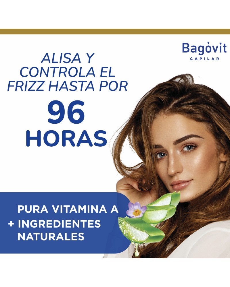 Crema para Peinar Pelo Largo y Sin Frizz Bagóvit elimina la estática de forma inmediata sin dejar el pelo pesado o grasoso. Su fórmula combina Pura Vitamina A con Aloe Vera, favoreciendo la irrigación sanguínea de los folículos capilares para otorgar al pelo más fuerza, brillo y vitalidad. Además, también contiene Elixir de Flores, que nutre y estimula el crecimiento del pelo. Alisa y controla el frizz hasta 96%. Refuerza las puntas, salvando los últimos centímetros del pelo. Lo fortalece y nutre para prevenir quiebres y mantener el largo liso y brilloso.
