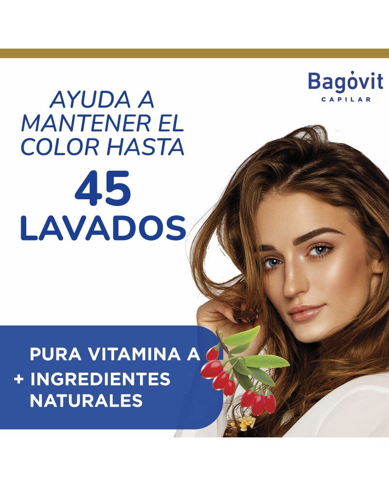El Shampoo Color Radiante Bagóvit contiene Pura Vitamina A, combinada con Keratina Vegetal, que ayuda a sellar las fibras capilares y a controlar el encrespamiento del cabello. Además, su fórmula con Bayas de Goji, reactiva la belleza del pelo dañado, aumentando su espesor y suavidad. Genera un sellado duradero, manteniendo los colorantes en la fibra.