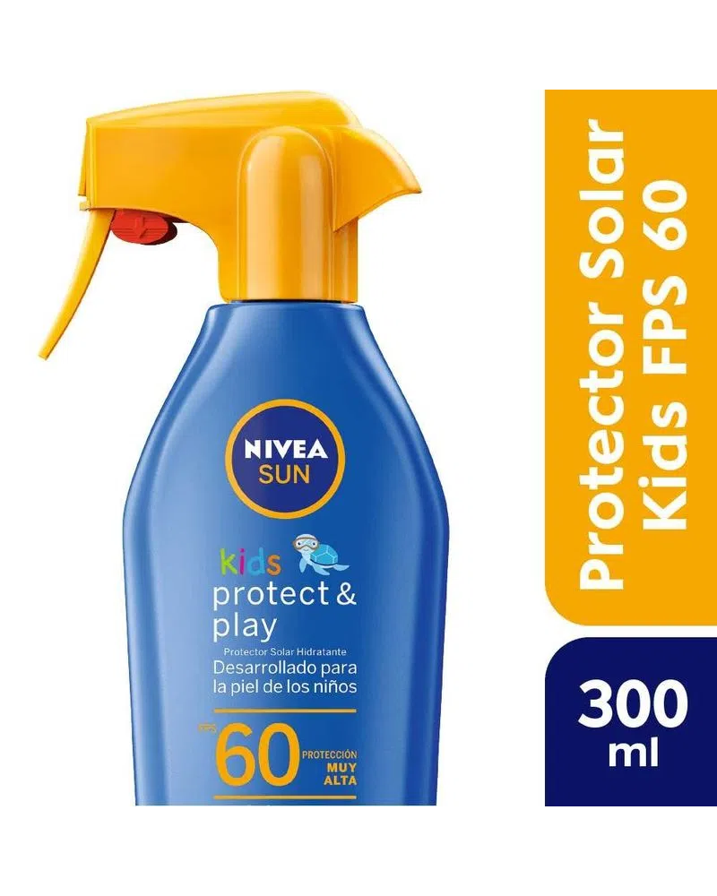 NIVEA SUN Protege & Juega Spray Solar Niños FPS60 proporciona una protección UVA/UVB inmediata y altamente eficaz a la piel de los niños.