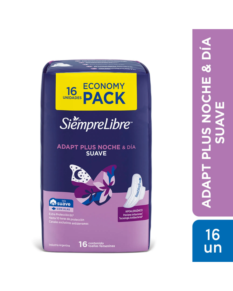 SIEMPRE LIBRE - Toallitas Adapt Plus Noche Y Días Suave Con Alas x 16 Unidades