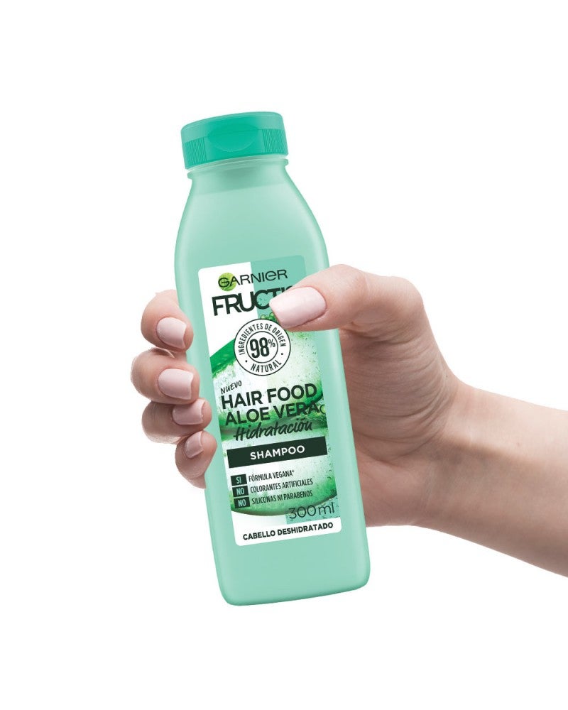 ¿Pelo deshidratado? Fructis Hair Food Aloe para hidratar tu pelo. Este shampoo tiene 96% de ingredientes de origen natural y fórmula vegana. No tiene siliconas, ni parabenos, ni colorantes artificiales. Además, es Cruelty Free.Si seguís el método Curly, este shampoo podes usarlo para limpieza profunda. ¿Cómo usarlo? Aplicá el shampoo sobre el pelo húmedo masajeando suavemente. Dejá actuar y enjuagá con abundante agua. Completá la rutina usando el acondicionador diariamente y la crema de tratamiento una vez por semana.Todos los productos de Fructis son reciclables. Enjuagalos, separalos y dejalos en un contenedor/campana verde o punto verde. TIP: si podés, sacales la etiqueta.Green Beauty, nuestro compromiso hacia una belleza sustentable.