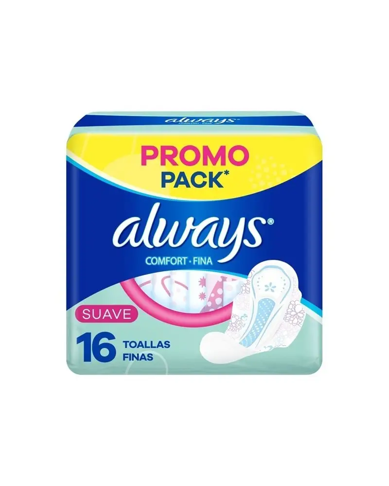 ALWAYS - Toallas Femeninas Comfort Fina Suave x 16 Unidades