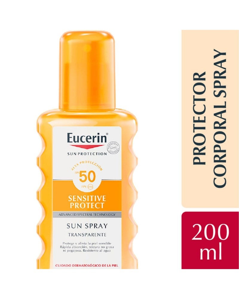 Eucerin Sun Spray Transparente FPS 50 es un protector solar avanzado en spray que no deja residuos visibles en la piel. Para pieles normales y grasas. Ideal para la piel con vello o para usar sobre el cuero cabelludo, con o sin cabello.