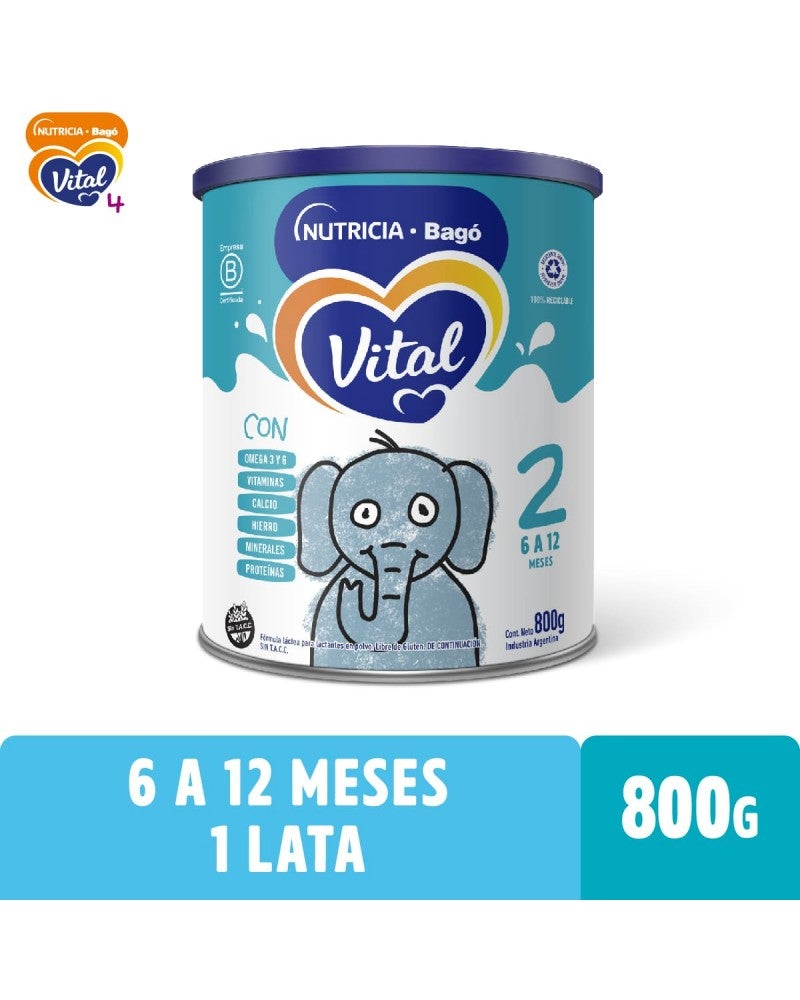 Fórmula láctea para lactantes en polvo. Libre de Gluten DE CONTINUACION Fórmula láctea para lactantes en polvo. CON: BIFIBRAS, VITAMINAS, MINERALES, PROTEINAS, CALCIO, HIERRO, OMEGA 3 Y 6. SIN: AZÚCAR AGREGADO, SIN TACC.