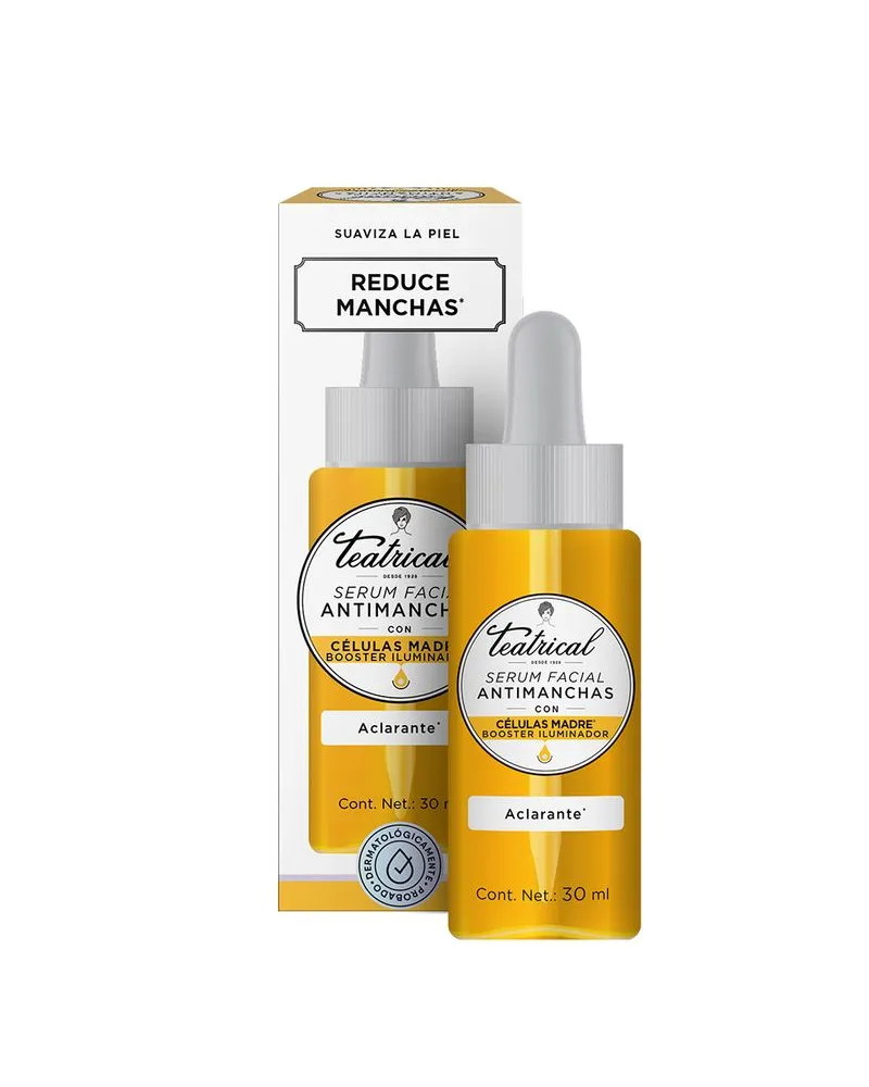 Teatrical Serum Facial Antimanchas con celulas madre y booster iluminador. Reduce manchas. Aclarante. Suaviza la piel.