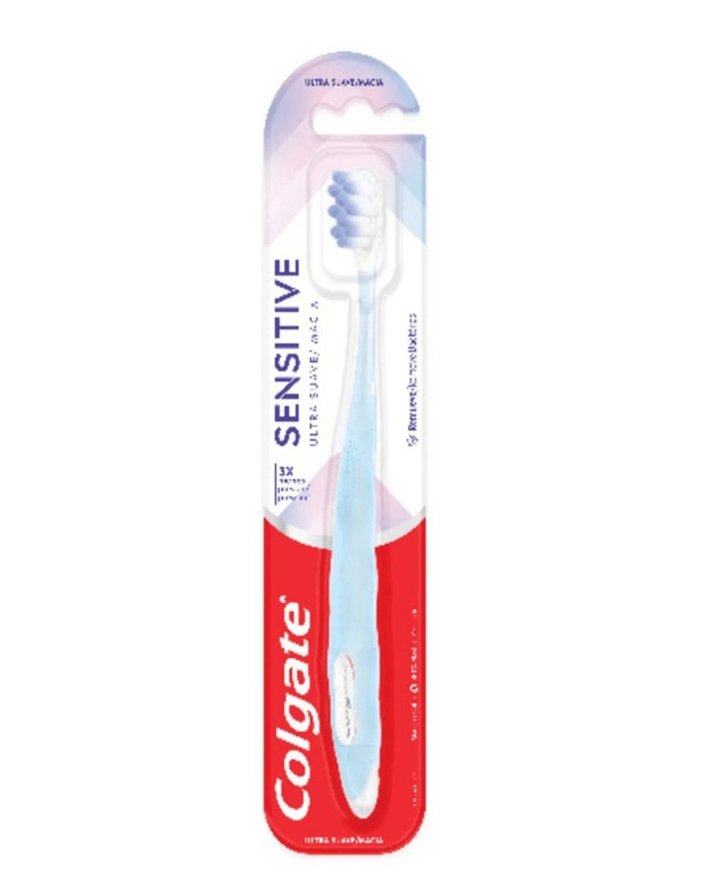 Cepillo dental suave para encías y dientes sensibles. 3x menos presión en dientes y encías vs un cepillo Colgate Extra Clean. Cerdas ultra suaves para la sensibilidad dental. 6300 cerdas de alta densidad. Cuello súper flexible y mango ergonómico.