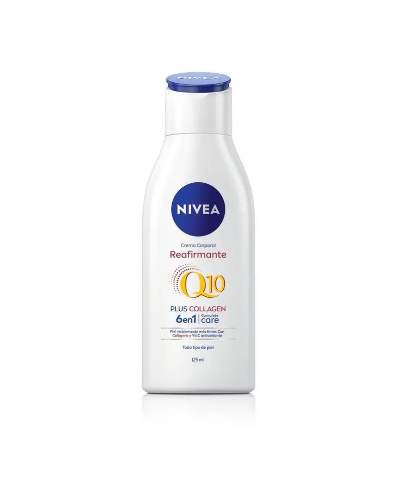 La Crema corporal NIVEA Q10 + Colágeno ofrece 6 beneficios en 1: 48 horas de humectación profunda, poderosos antioxidantes: Vit C + Q10, rápida absorción, fácil aplicación, piel visiblemente más firme, elástica y radiante. Su fórmula combina Coenzima Q10, Colágeno y Vitamina C, tres ingredientes que hidratan profundamente la piel y la suavizan. Su textura ligera es ideal para todo tipo de piel.