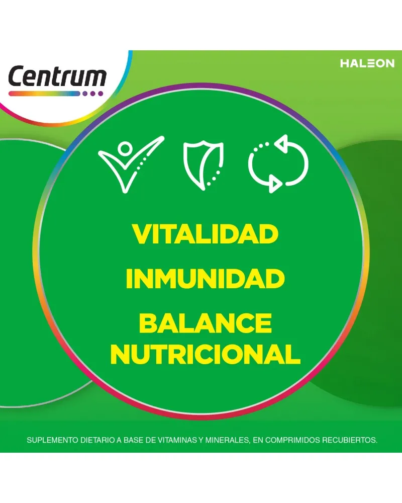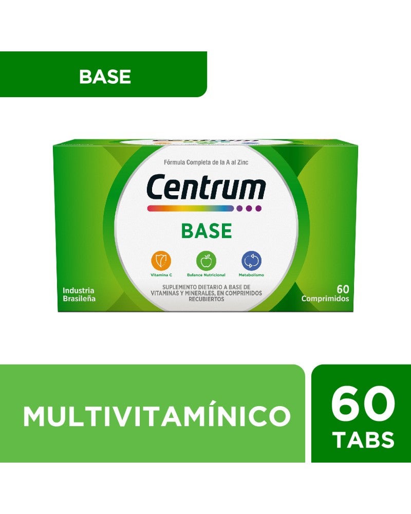 Centrum Base es un multivitamínico-multimineral, con 13 vitaminas y 11 minerales. Fórmula completa de la A al ZINC. Centrum es el multivitamínico #1 en ventas en el mundo.