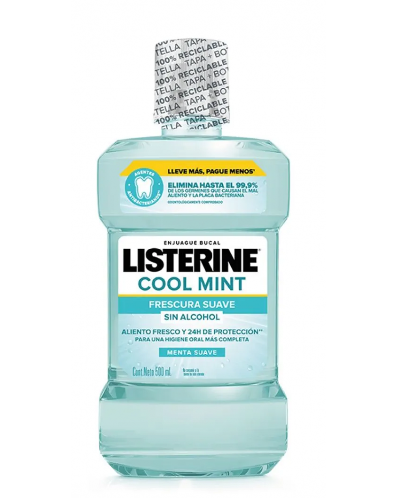 LISTERINE - Enjuague Bucal Sin Alcohol Menta Suave x 500 ml