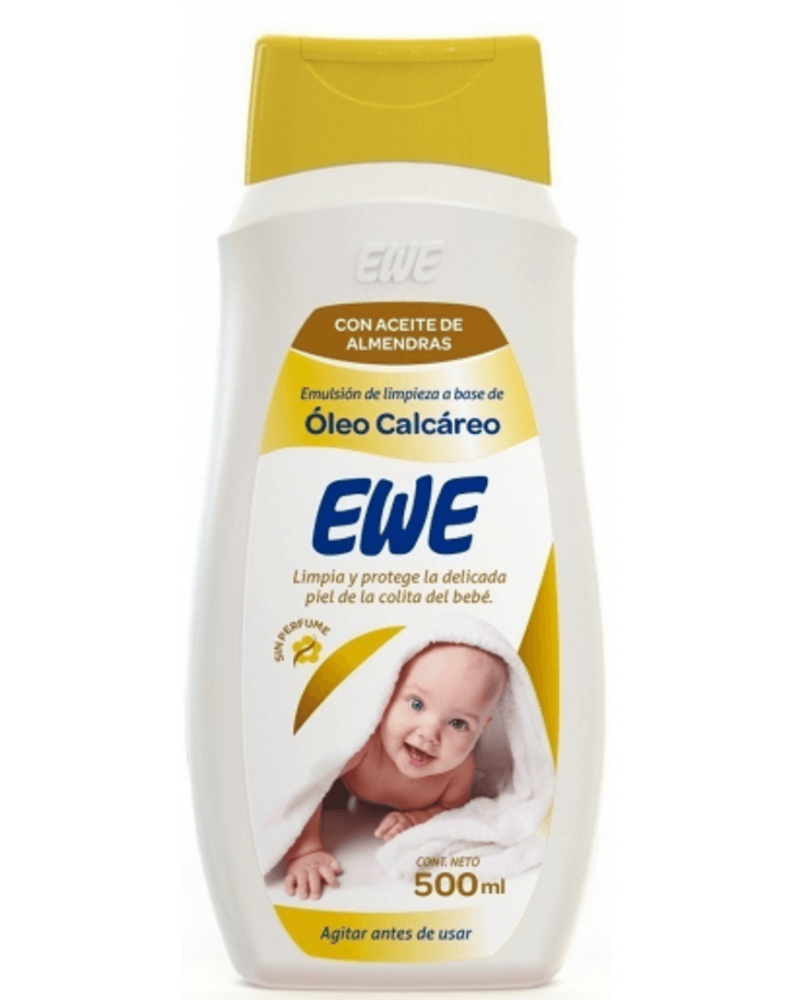 Los beneficios del Oleo calcáreo con Aceite de almendras EWE radican en su gran poder de limpieza y nula agresividad a la piel, su pH ligeramente alcalino -que neutraliza la acidez producida en la zona del pañal, y a que deja una capa protectora con Aceite de almendras PURO, que suaviza y ayuda a regenerar y calmar la piel contribuyendo a evitar dermatitis, paspaduras e irritaciones.Está indicado para la limpieza de la colita del bebe en especial en recién nacidos, ya que su composición -a diferencia de las toallitas húmedas, tiene similitud con el manto lipídico que protege la piel del bebe.