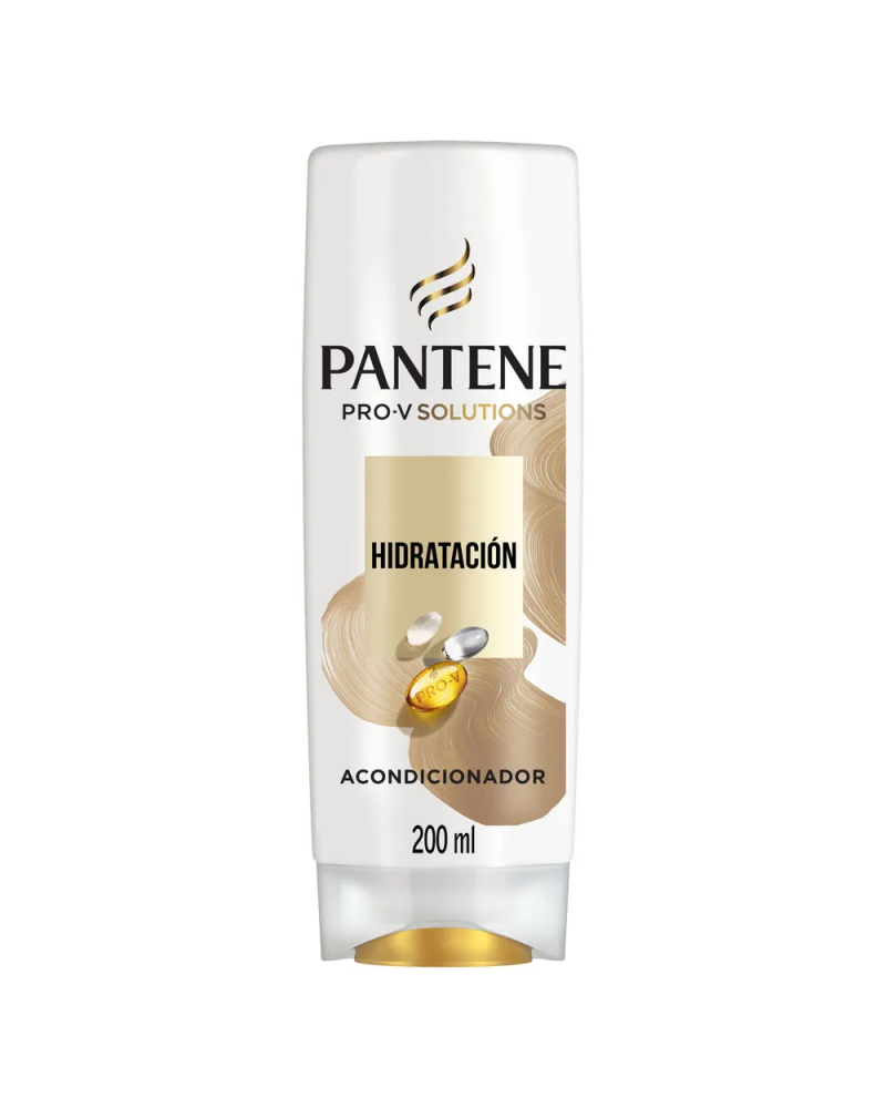 La fórmula de el acondicionador sin sal' Hidratación de Pantene Pro-V Essentials con glicerina, óleo de coco, óleo de argán y Pro-Vitaminas hidrata cada hebra para evitar pelos rebeldes y darle un brillo luminoso.