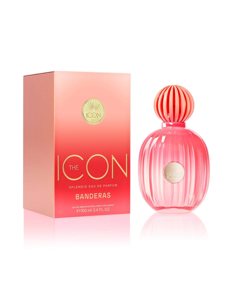 Después del enorme éxito cosechado por el lanzamiento de The Icon Woman, Banderas presenta el lanzamiento de The Icon Splendid, una fragancia para transmitir una nueva faceta de nuestra mujer ICÓNICA, llena de luminosidad y liberación. Nació para volar y sabe que la actitud adecuada la llevará a lo más alto.Notas de Salida: Pera, Pimienta Negra.Notas de Corazon: Peonía, Flor Naranja.Notas de Fondo: Vainilla, Praliné Rosa.Aroma: Floral Gourmand.