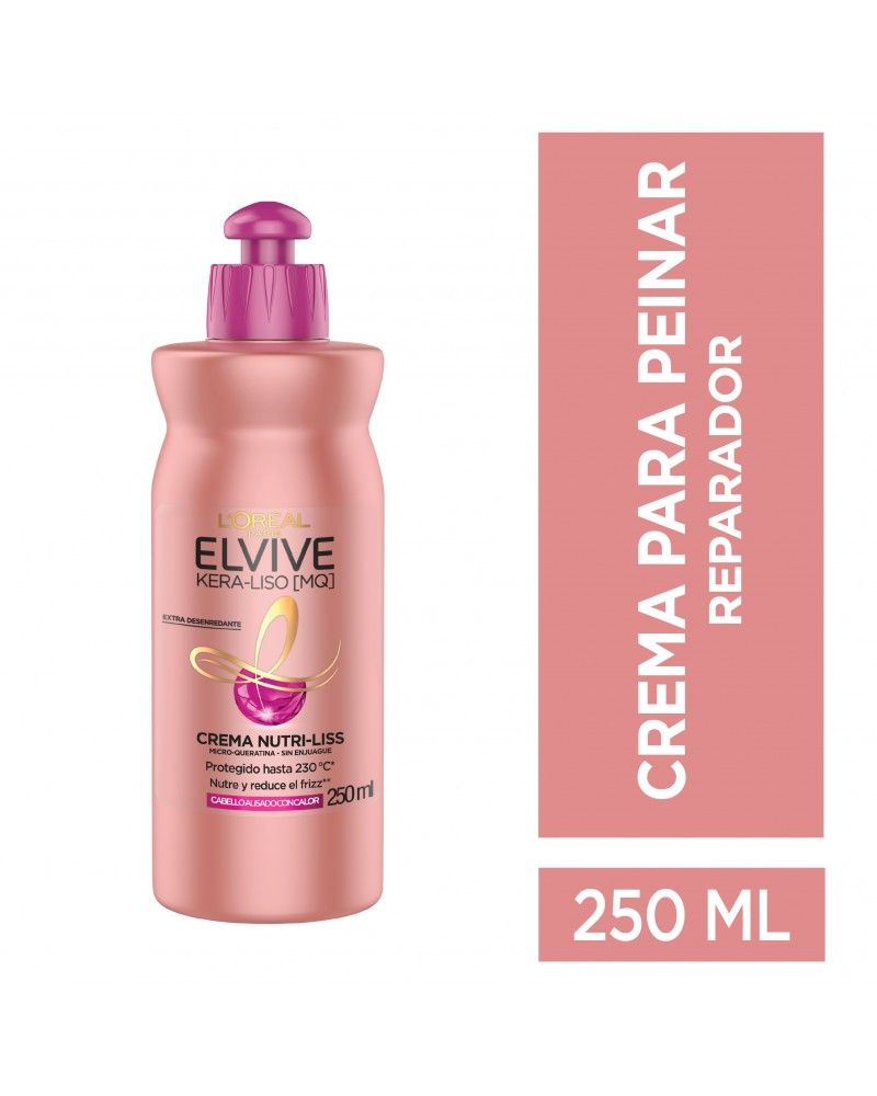 La crema para peinar Elvive Nutri Liss Kera Liso de 250ml proporciona nutrición y suavidad, ayudando a controlar el frizz y facilitando el peinado. Ideal para cuidar y reparar el cabello, dejándolo con un aspecto liso y saludable.