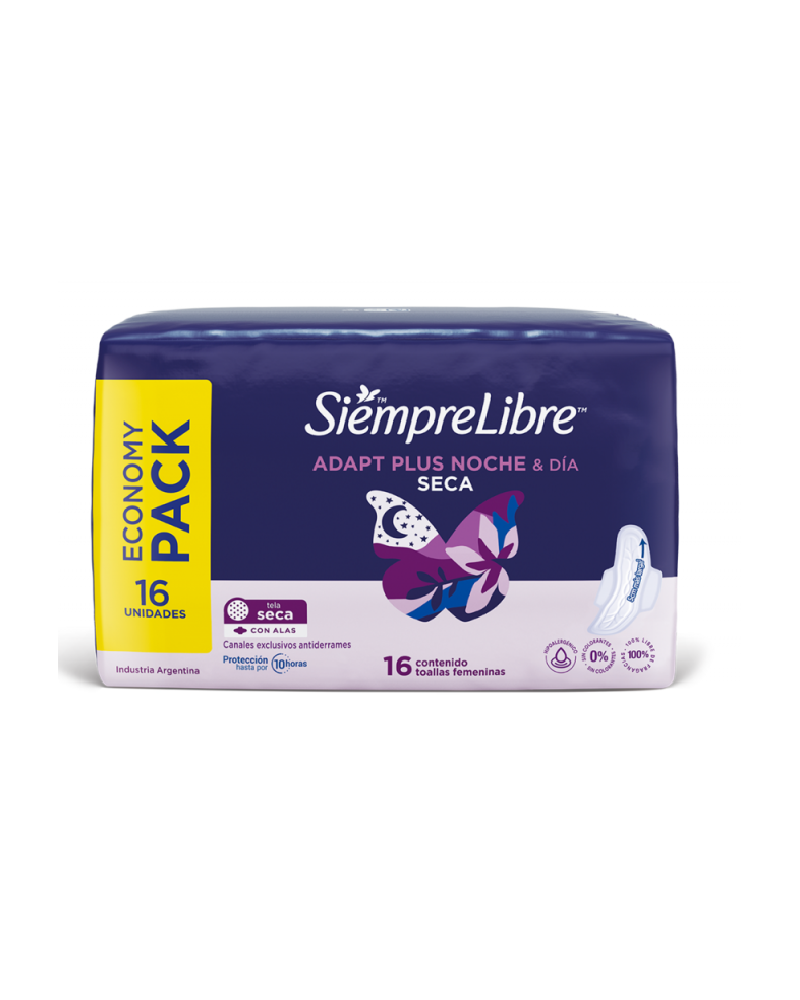 SIEMPRE LIBRE - Toallas Femeninas Adapt Plus Noche Y Día Con Alas x 16 Unidades
