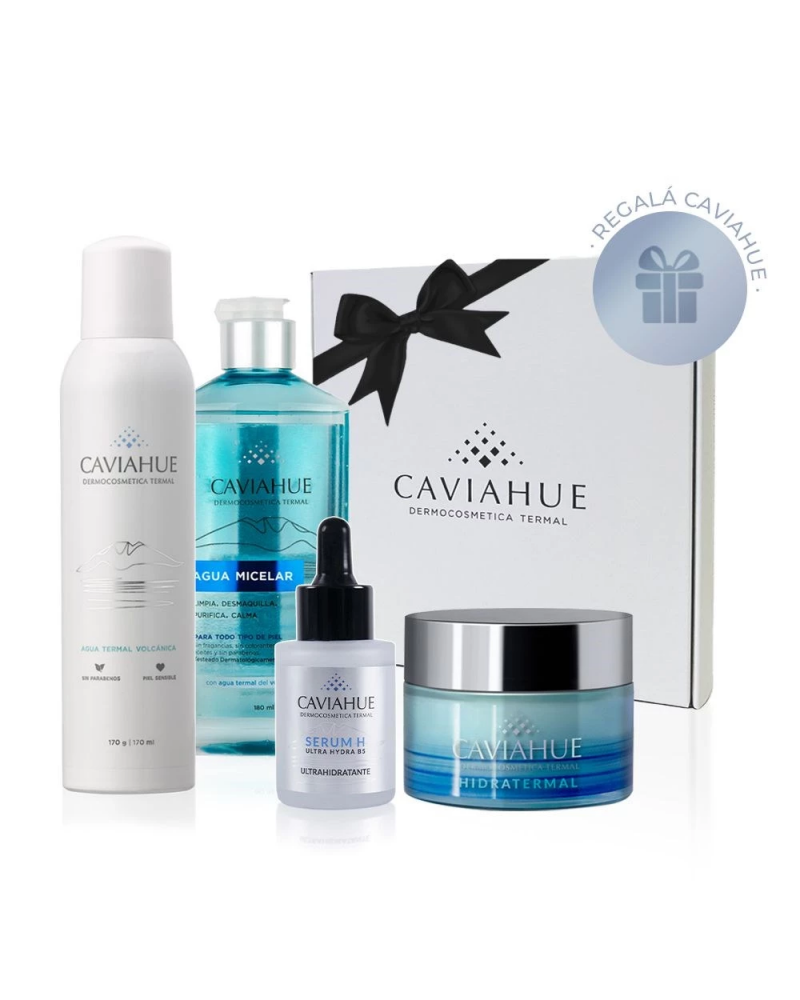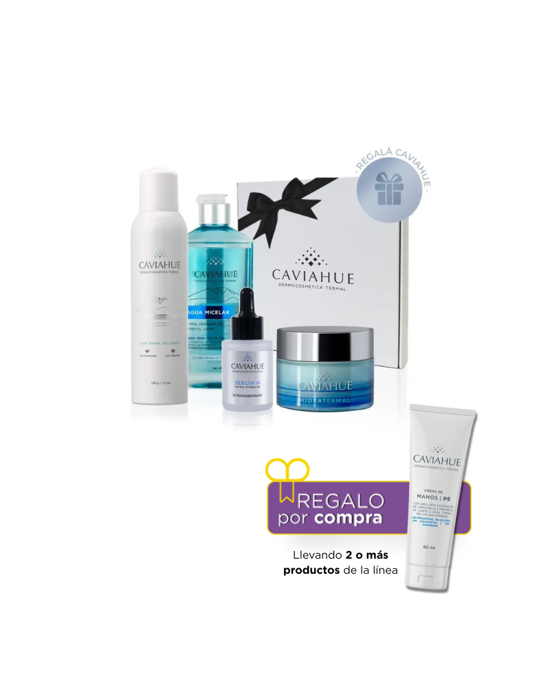 BENEFICIOS ◆ Agua Micelar: Limpia la piel con un efecto calmante. Desmaquilla y suaviza la piel. Apto para pieles sensibles! ◆ Agua Termal Volcánica: Hidrata, calma y refresca la piel. Su uso facilita la absorción de nutrientes y estimula la regeneración celular. Restituye la humectación y elasticidad natural de la piel. Fija el maquillaje. ◆ Serum H: Su fórmula con Tremella (Ácido Hialurónico Vegetal), Vitamina B5, Beta-glucan y Agua Termal del Volcán Copahue, hidrata y protege la piel desde la superficie hasta las capas más profundas. Su uso diario calma y reduce las rojeces e inflamaciones. Retrasa el envejecimiento, formando una película protectora. ◆ Gel Hidratermal: El hidratante ideal para pieles grasas. Su fórmula ligera con Ácido Hialurónico y Agua Termal Volcánica hidrata, revitaliza e ilumina, protegiendo el rostro de la polución ambiental y previniendo el envejecimiento prematuro.
