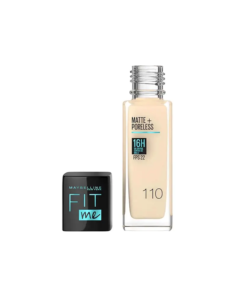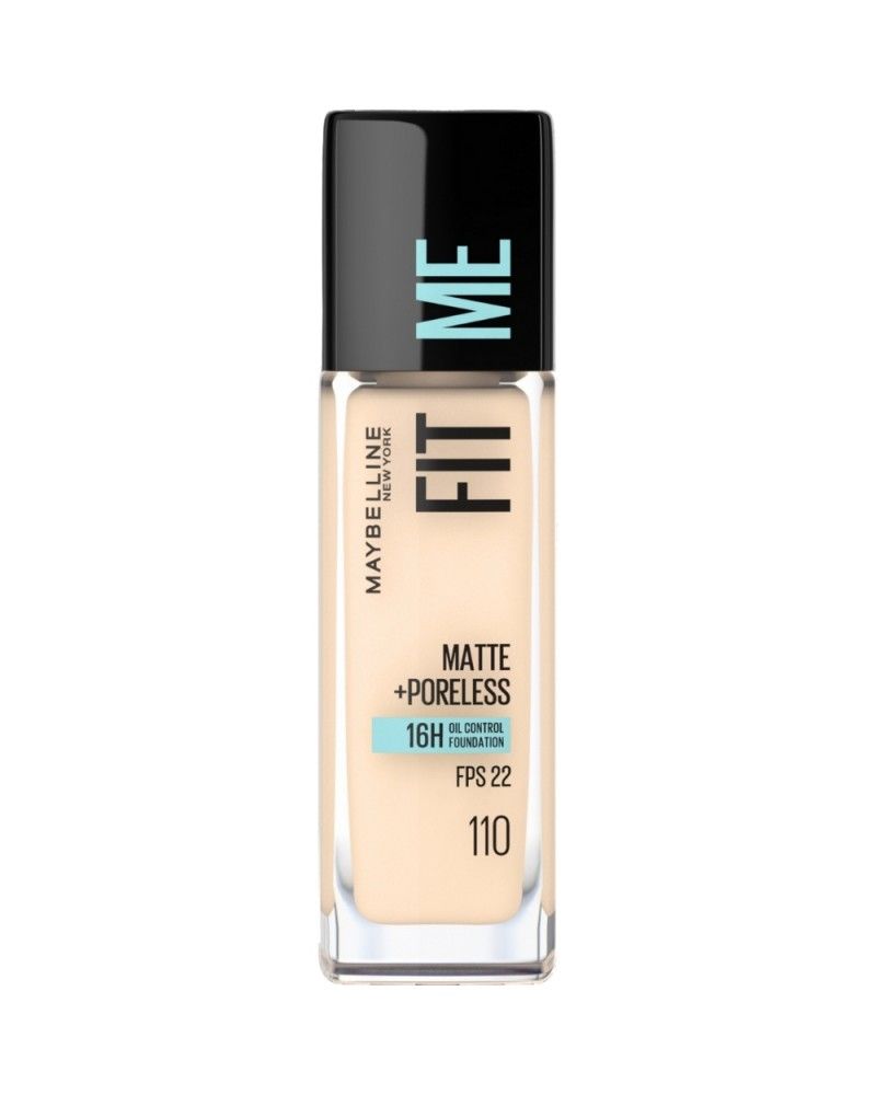 Tono 110 Porcelain La base Fit Me Matte + Poreless matifica la piel y refina los poros para un acabado naturalmente hermoso e impecable. Cobertura media construible. Se ajusta al tipo de piel y controla el brillo. Ahora cuenta con FPS 22.