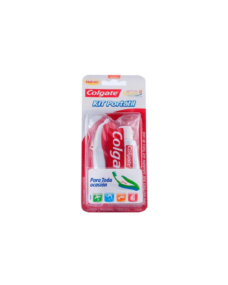 - Contiene neceser + crema dental 30g + cepillo dental. - El cepillo se dobla a un tamaño reducido y práctico que es fácil de llevar, junto con la crema dental en un práctico neceser. - Colgate Total 12® es la ÚNICA crema dental que proporciona 12 horas de protección contra las caries, la gingivitis y la placa - todo lo que usted necesita para unos dientes más blancos y una sonrisa saludable.