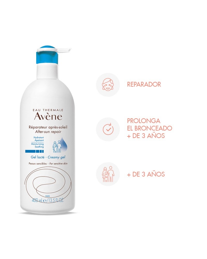 Alivia e hidrata la piel después de la exposición al sol. Hipoalergénico y no comedogénico. Sin parabenos.Beneficios.Sus activos con propiedades CALMANTES, HIDRATANTES* Y NUTRITIVAS favorecen la reestructuración de la barrera cutánea.POTENTE ANTIOXIDANTE, Pre-tocoferil, para la protección celular contra los radicales libres.Ofrece una textura untuosa y fluida, agradablemente PERFUMADA.Ligera y no grasa, penetra rápidamente en la piel, lo que hace que su aplicación sea especialmente agradable.Hidratación de las capas superiores de la epidermisModo Uso.Aplicar la mascarilla en una capa espesa sobre el rostro. Dejar actuar entre 10 y 15 minutos. Retirar el excedente con un algodón. Completar con una fina pulverización de Agua Termal Avène.Composición.Avene thermal spring water (avene aqua). Peg-4. Cyclomethicone. Sorbitan stearate. Caprylic/capric triglyceride. Mineral oil (paraffinum liquidum). Carthamus tinctorius (safflower) seed oil (carthamus tinctorius seed oil).1,2-hexanediol. Acrylates/c10-30 alkyl acrylate crosspolymer. Beta-sitosterol. Caprylyl glycol. Dimethiconol. Fragrance (parfum). Glycine soja (soybean) seed extract (glycine soja seed extract). Glycyrrhetinic acid. Hydroxyethyl acrylate/sodium acryloyldimethyl taurate copolymer. Isohexadecane. Peg-32. Peg-400. Peg-45 palm kernel glycerides. Polysorbate 60. Sodium hydroxide. Sorbic acid. Sorbitan isostearate. Sucrose cocoate.tocopheryl glucoside. Water (aqua). Xanthan gum.Presentación.400Ml.