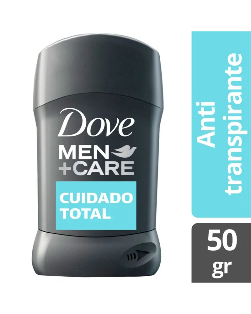El desodorante antitranspirante Dove Men+Care Cuidado Total es potente contra la transpiración, no contra tu piel. Este antitranspirante Dove Men+Care está dermatológicamente probado. El desodorante Dove Men+Care te otorga 48 horas de protección contra la transpiración. El Desodorante en barra Dove Men+Care contiene ¼ de tecnología humectante que protege tu piel contra la irritación. Los antitranspirantes Dove Cuidado Total contiene una fórmula 100 % libre de alcohol. Si buscas un aroma refrescante, el desodorante Dove Men+Care es lo que necesitas.