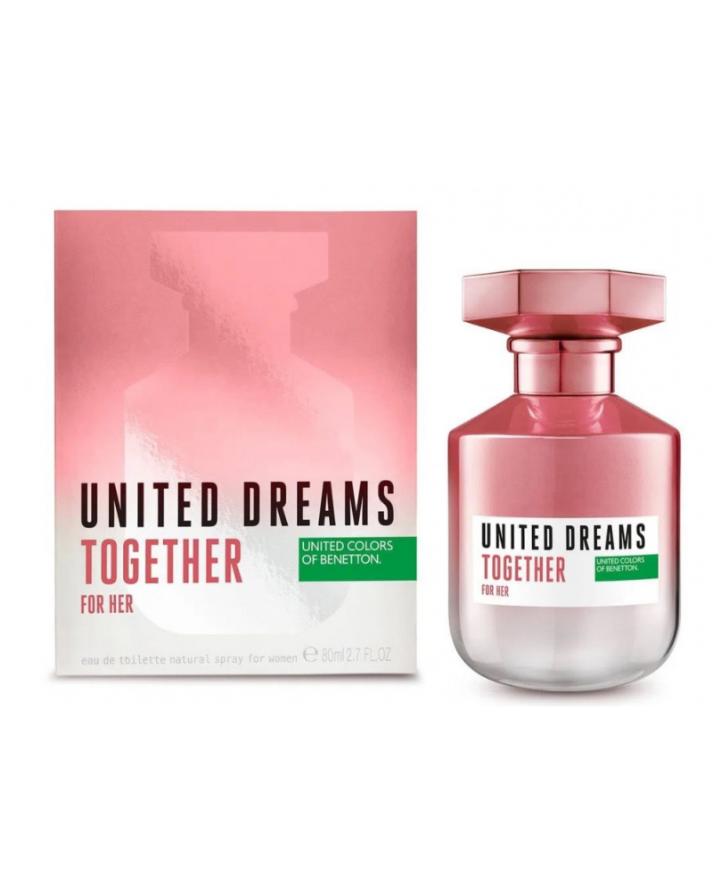 United Dream TOGETHER for Her es un perfume para mujer de aroma floral afrutado. Entrega un toque dulce y aterciopelado como una suave caricia en los labios gracias a la mezcla de melón y la magnolia. Las notas finales de vainilla generan una sensación de cálida y deliciosa sensualidad. El frasco, de la misma línea de los clásicos United Dreams, pasa de rosado metálico a trasparente, lo que le da un look único. Es un regalo (o auto-regalo) perfecto.