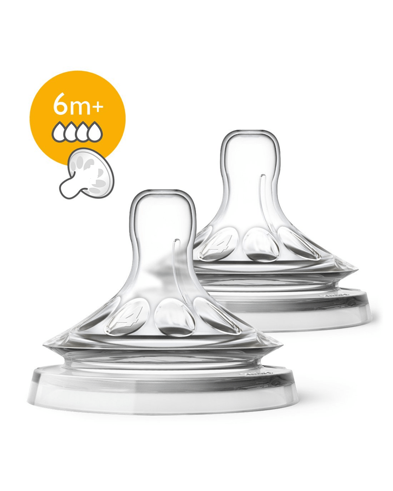 Tetina Natural Avent Flujo Rapido 6m+ x 2 un SCF 654/27. La forma natural de alimentar con biberón. La tetina dispone de un innovador diseño con pétalos que facilita un enganche natural similar al del pecho, para combinar fácilmente pecho y biberón.