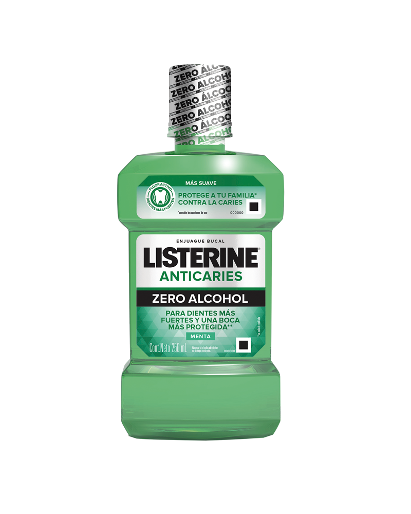 Enjuague bucal ANTI CARIES ZERO ALCOHOL después del cepillado y el hilo dental ofrece una higiene bucal completa para toda la familia. Encías más saludables en 2 semanas. Elimina la placa bacteriana y el 99,9% de los gérmenes. Sin alcohol, sabor suave.