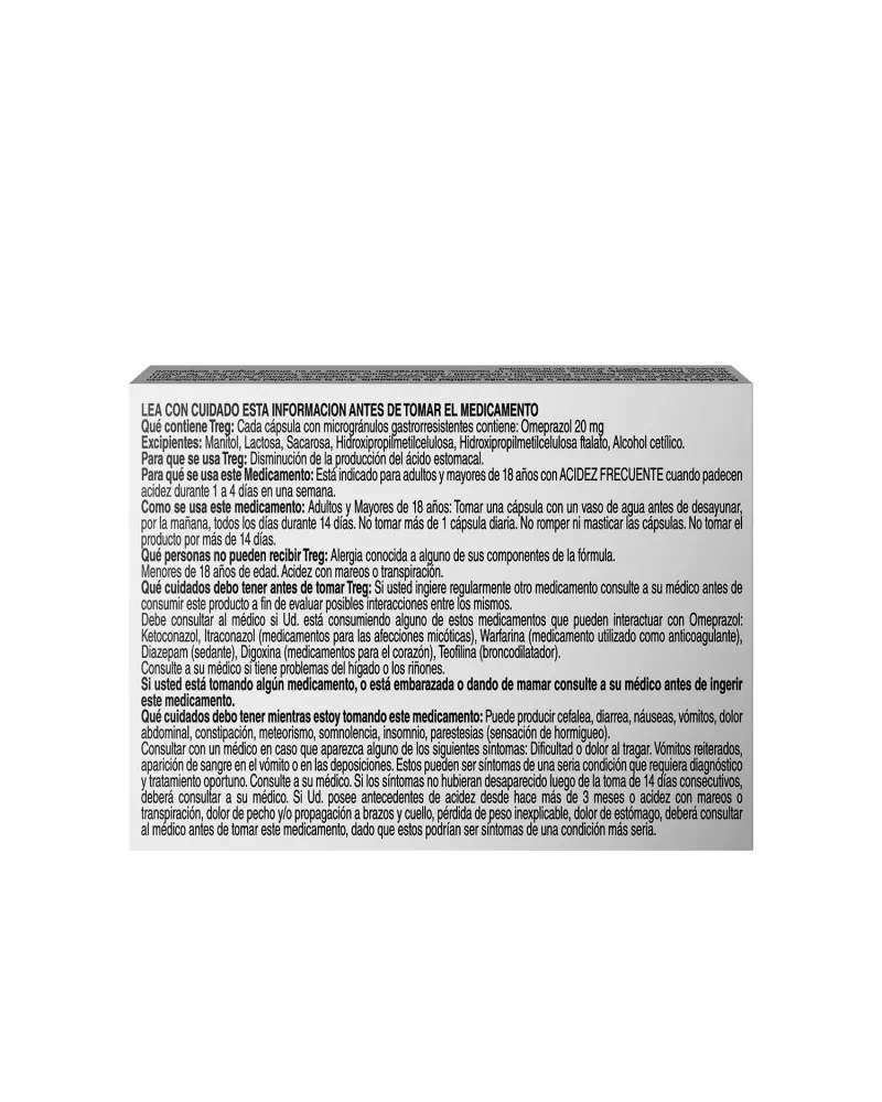 TREG - Omeprazol 20 Mg x 15 Cápsulas
