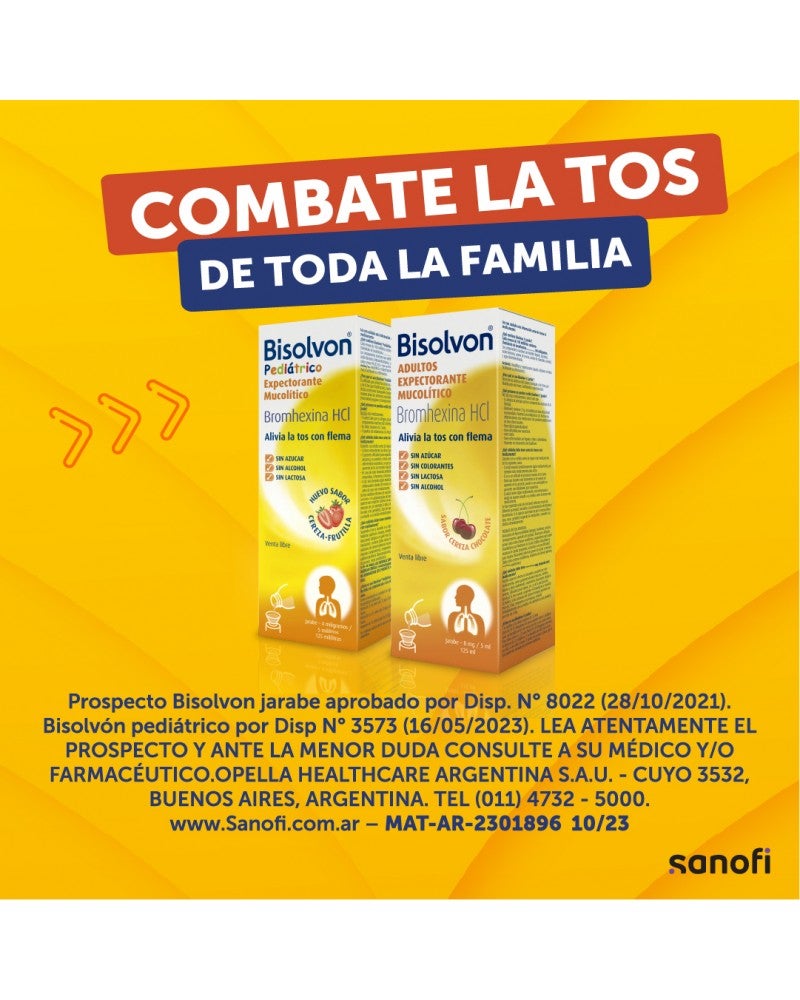 Bisolvon facilita la expectoración porque suaviza las flemas de los pulmones causantes de la tos, ayudando a su expulsión. No contiene alcohol, colorantes, ni azúcar, por lo que puede ser tomado por personas diabéticas.