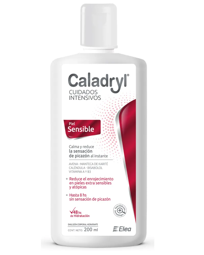 La piel atópica y sensible necesita de cuidados específicos como una rutina de higiene y de hidratación diaria, con ingredientes emolientes, para prevenir y minimizar la aparición de eczemas o erupciones escamosas y pruriginosas. Caladryl Cuidados Intensivos para Piel Sensible reduce el enrojecimiento de pieles sensibles y calma la sensación de picazón al instante. Restaura la barrera de la piel normalizando los niveles de hidratación.