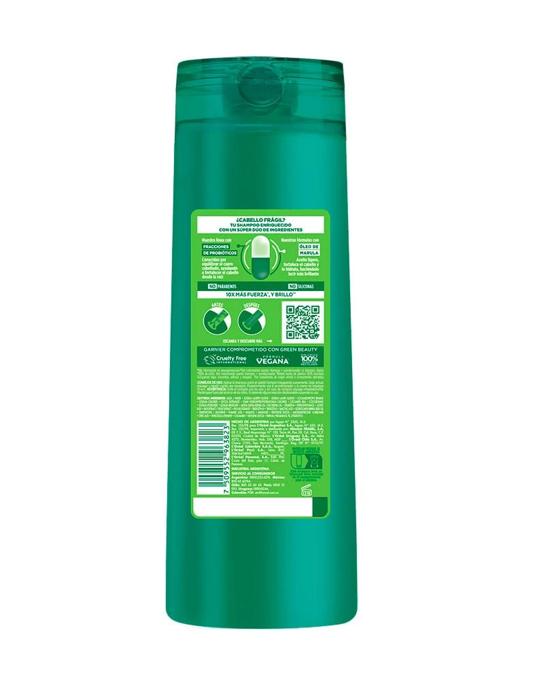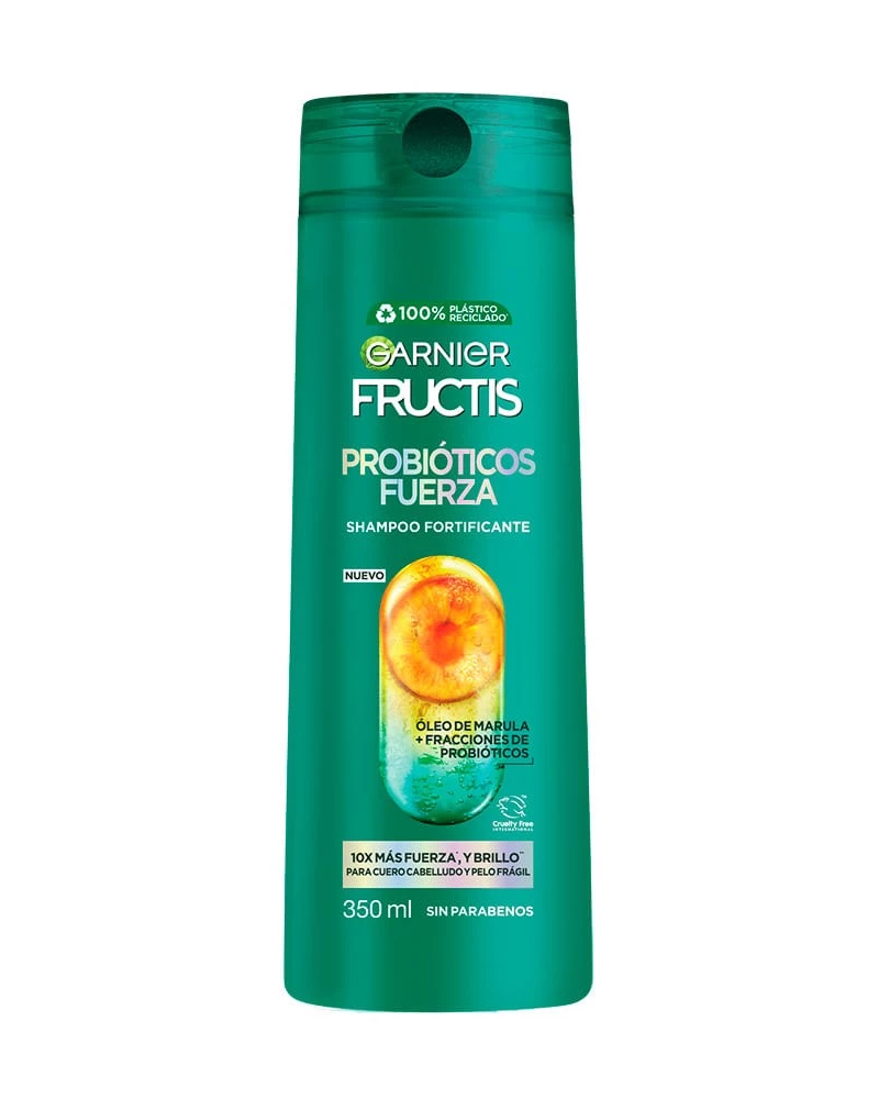 ¿Pelo frágil y opaco? Probá el nuevo Fructis Probióticos Fuerza, con la poderosa combinación de óleo de marula y fracciones de probióticos. Refuerza el pelo desde la raíz, aportándole 10 veces más fuerza y brillo. Nutre intensamente el cuero cabelludo, dejándolo visiblemente más saludable, resistente y con una luminosidad increíble. Sin parabenos, sin sal y sin aceites minerales.