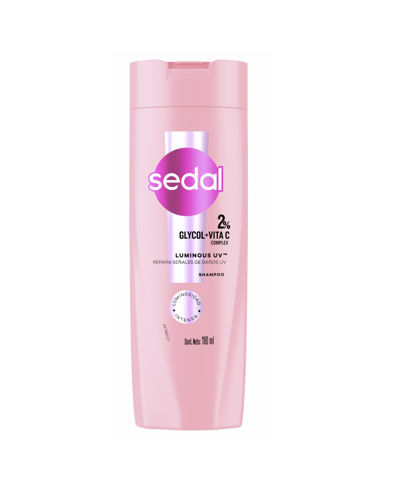 ¡Brillá con el Nuevo Shampoo Sedal Luminous UV! Esta línea exclusiva repara las señales de daños causados diariamente por los rayos ultravioletas (UV) y activa la luminosidad. Sella las cutículas y repara las señales de daños causados por los rayos UV.