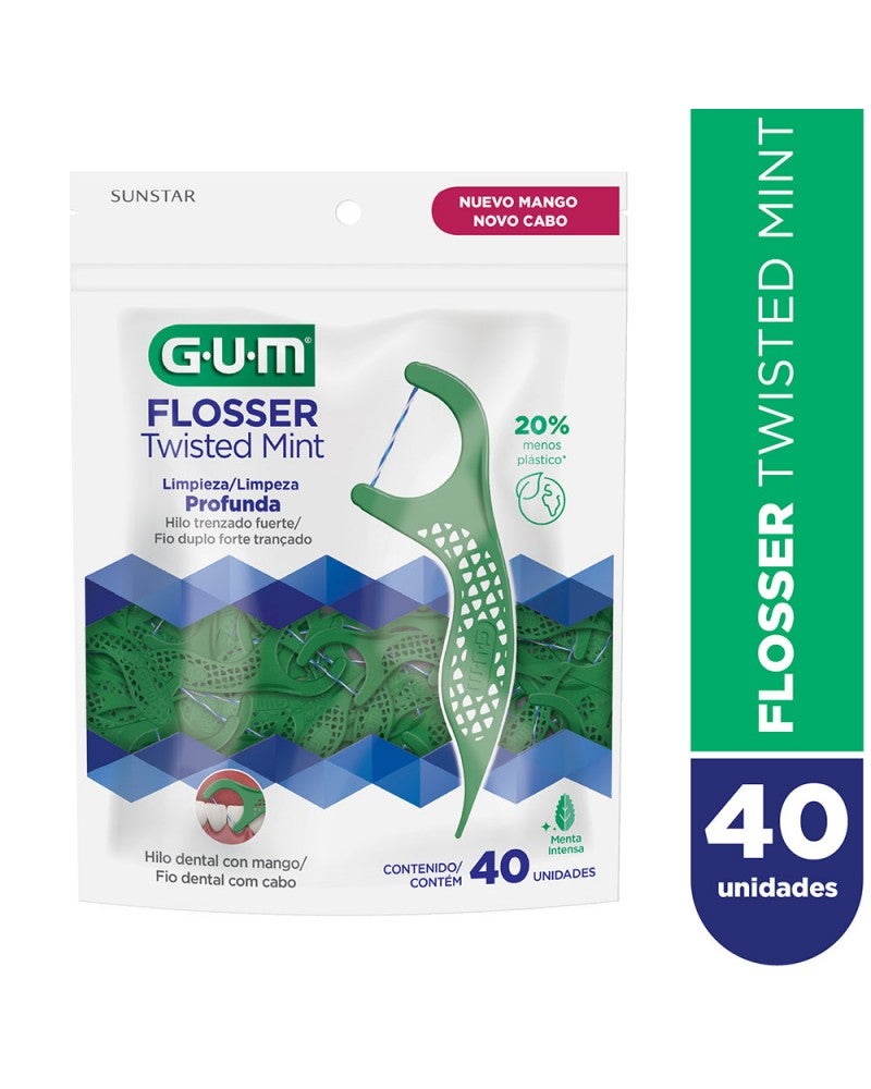 GUM - Hilo Dental Flosser Twisted Mint x 40 Unidades