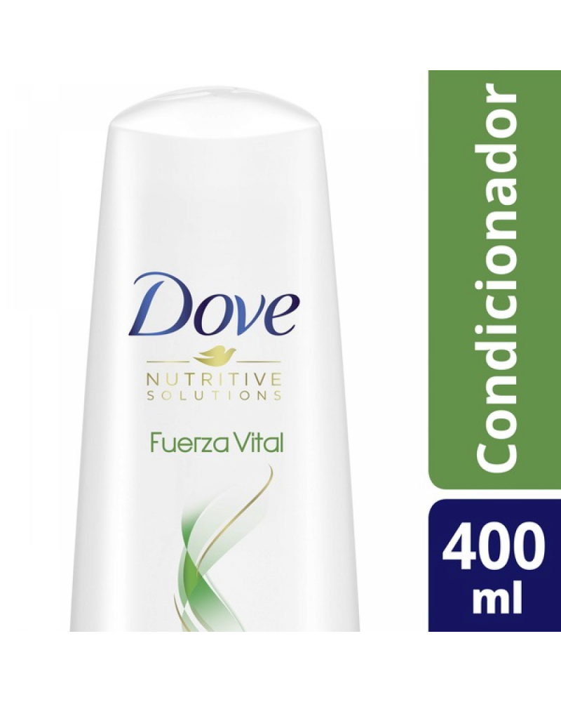 La variedad Fuerza Vital de Dove trata los cabellos dañados, frágiles y quebradizos, producto de las rutinas estresantes. Este sistema de lavado con fórmula traslúcida, más liviana, ofrece el equilibrio justo entre humectación y volumen. De esta forma, devuelve al pelo la vitalidad, la fuerza y la suavidad, sin dejarlo pesado. Además, ayuda a mejorar la circulación del cuero cabelludo gracias a su fórmula con suplemento de vitaminas B3 y pro Vit-B5.Beneficios.El acondicionador Fuerza Vital trata los cabellos dañados, frágiles y quebradizos, producto de las rutinas estresantes. Los acondicionadores Dove Fuerza Vital traen una combinación perfecta de nutrición y liviandad para tu pelo. Nutrición profunda desde el primer lavado: fortificado desde la raíz, brillante y suave hasta las puntas. Dove devuelve al pelo la vitalidad, la fuerza y la suavidad, sin dejarlo pesado. La crema de enjuague otorga un cuidado profundo pero dejando al pelo con una máxima sensación de liviandad. Tratamiento para el pelo que Recupera la fuerza interna. ¡Solo con Dove Fuerza Vital!Composición.Presentación.400ml