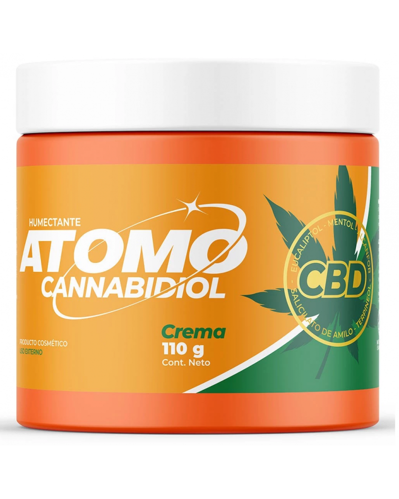 Átomo CBD es una crema humectante con Salicilato de amilo, Terpineol, Alcanfor, Mentol, Eucaliptol y Cannabidiol especialmente formulado para humectar la piel y brindar una sensación de relajación y confort.