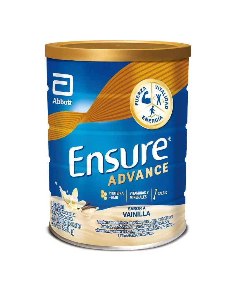El suplemento nutricional en polvo, Ensure Advance está específicamente formulado para apoyar la fuerza, la vitalidad y la energía. Destinado a personas que llevan un estilo de vida activo, para los que quieran mantener o recuperar su masa muscular, así como también para aquellos que se ejercitan habitualmente. Sabor Vainilla.