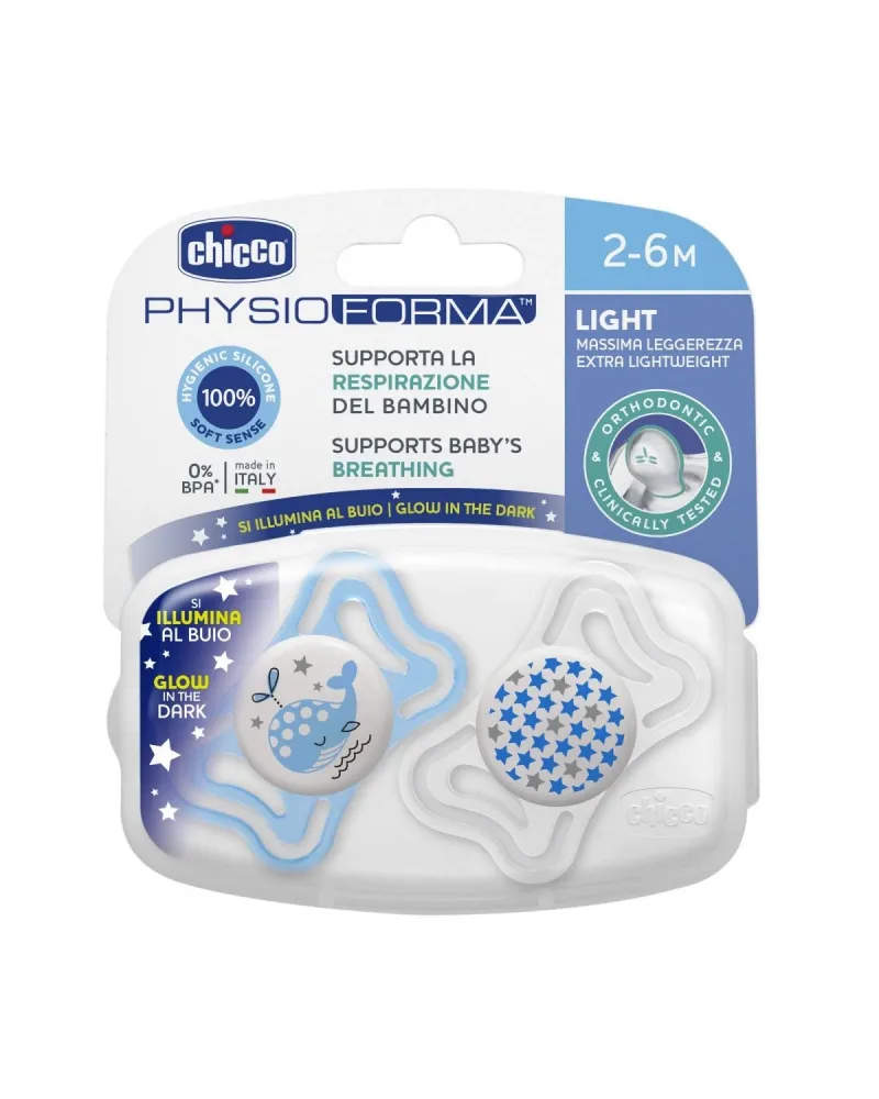 CHICCO - Chupete Physio Luminoso 2 - 6 Meses x 2 Unidades