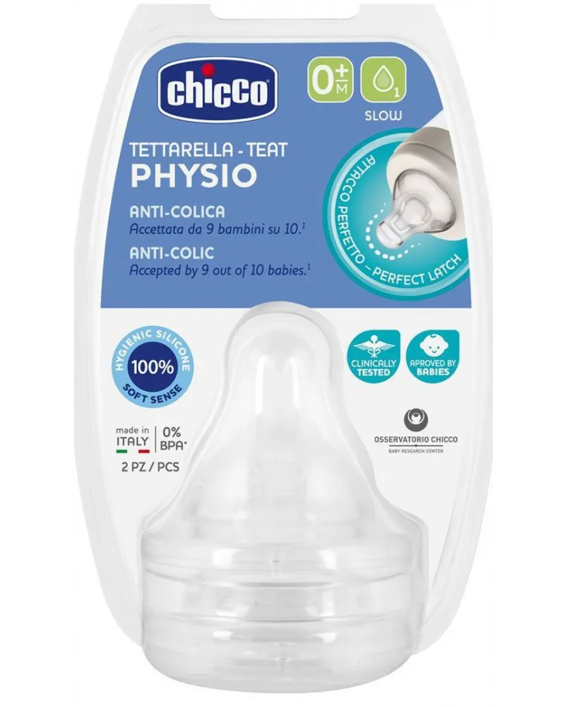 CHICCO - Tetina Flujo Lento 0m+ x 2 Unidades