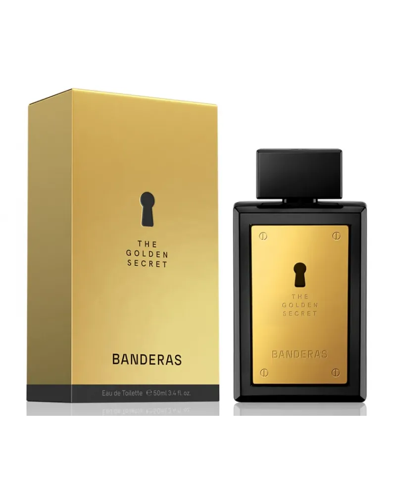 The Golden Secret de Antonio Banderas, ¿Te atreves a descubrir el perfume que guarda el secreto más preciado de un seductor?. Notas de Salida: Menta, licor de manzana verde. Notas de Corazón: Nuez moscada, comino. Notas de Fondo: Cedro,incienso.