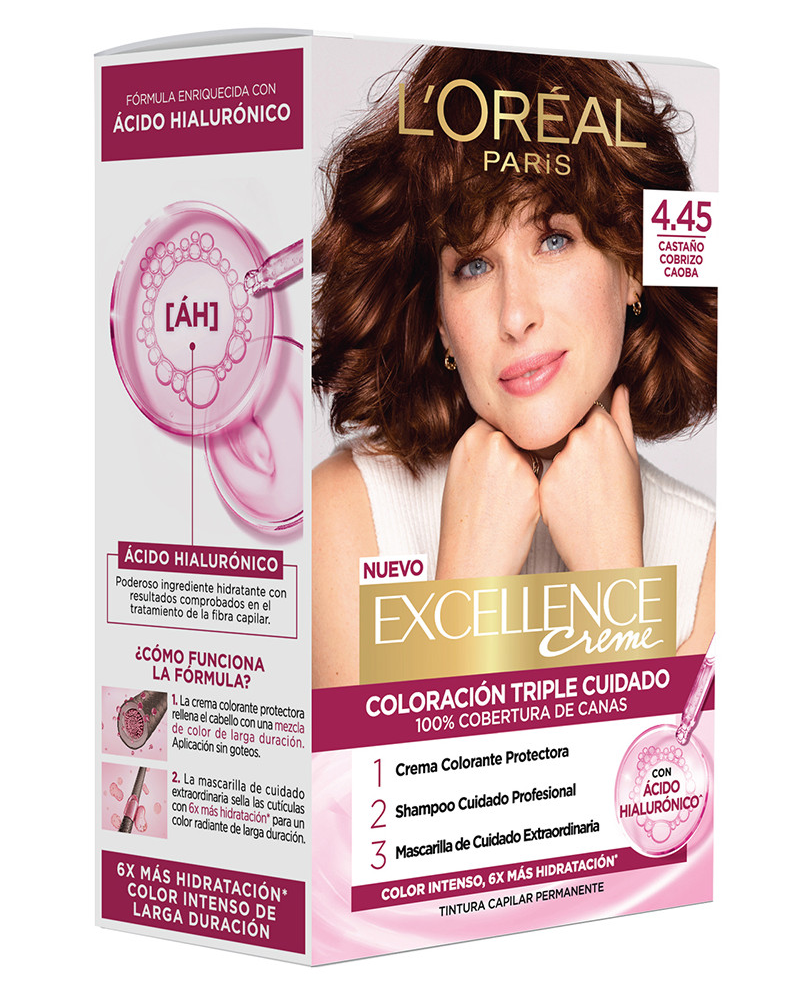 LOREAL - Kit Tintura Excellence Tono 4.45 Castaño Cobrizo Caoba