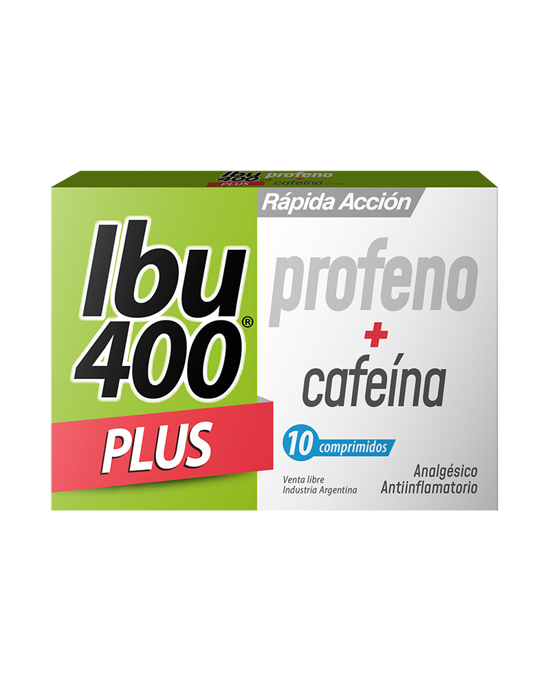 IBU 400 Plus es un medicamento analgésico y antiinflamatorio que combina dos componentes activos: 1. Ibuprofeno 400 mg -Pertenece al grupo de los antiinflamatorios no esteroideos (AINEs). -Su función principal es aliviar el dolor, reducir la inflamación y bajar la fiebre. -Actúa inhibiendo la producción de prostaglandinas, sustancias que generan dolor e inflamación. 2. Cafeína -Es un estimulante suave del sistema nervioso central. -Se añade para potenciar el efecto analgésico del ibuprofeno, permitiendo un alivio más rápido y eficaz del dolor. -También ayuda a disminuir la somnolencia que algunos analgésicos pueden causar.