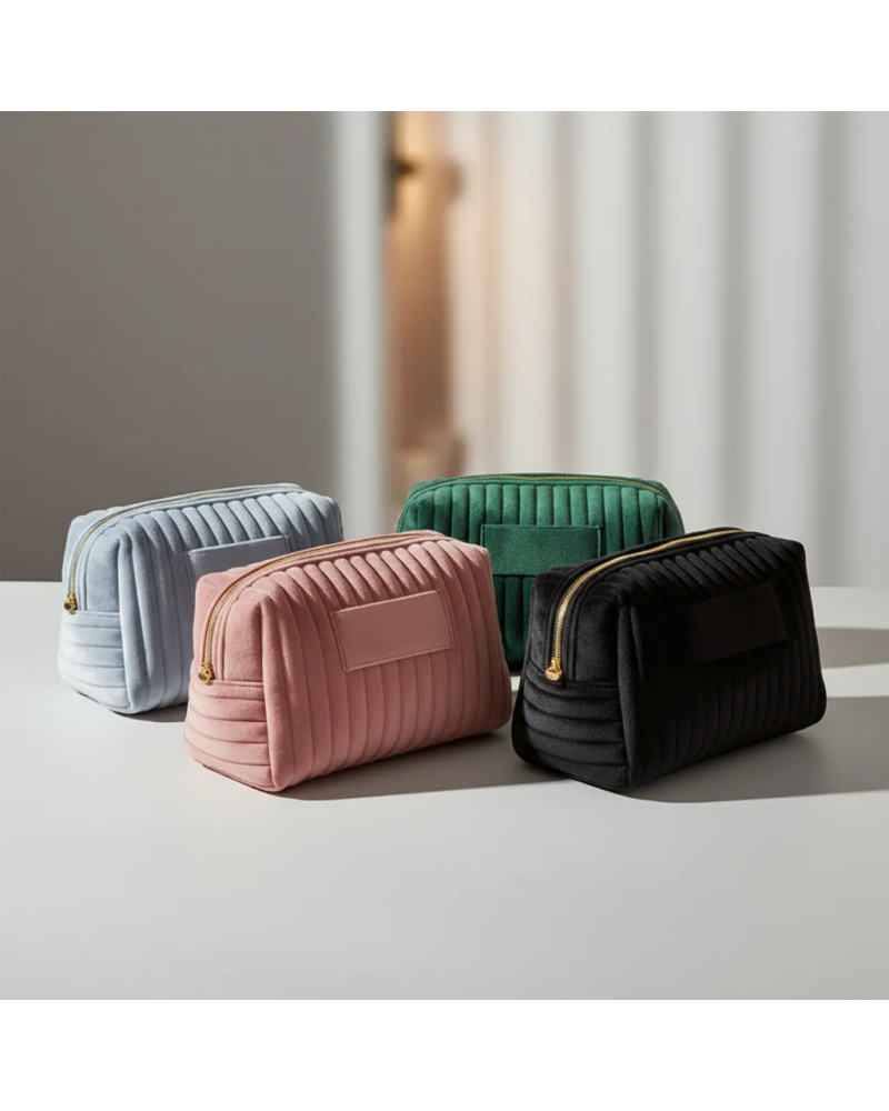 Neceser elegante y funcional, ideal para guardar maquillaje, productos de cuidado personal y accesorios. Confeccionado en material tipo terciopelo, ofrece una textura suave y un diseño sofisticado. Su tamaño M brinda la capacidad justa para el uso diario o para llevar en viajes, manteniendo todo organizado y protegido.