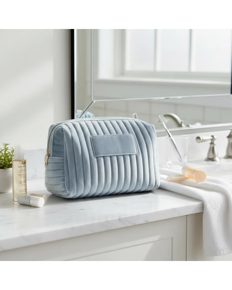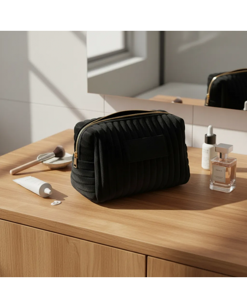 Neceser compacto y elegante, ideal para llevar maquillaje, productos de cuidado personal o pequeños accesorios. Confeccionado en material tipo terciopelo, ofrece una textura suave y un diseño sofisticado. Su tamaño S lo hace perfecto para la cartera o para viajes, manteniendo lo esencial siempre organizado.