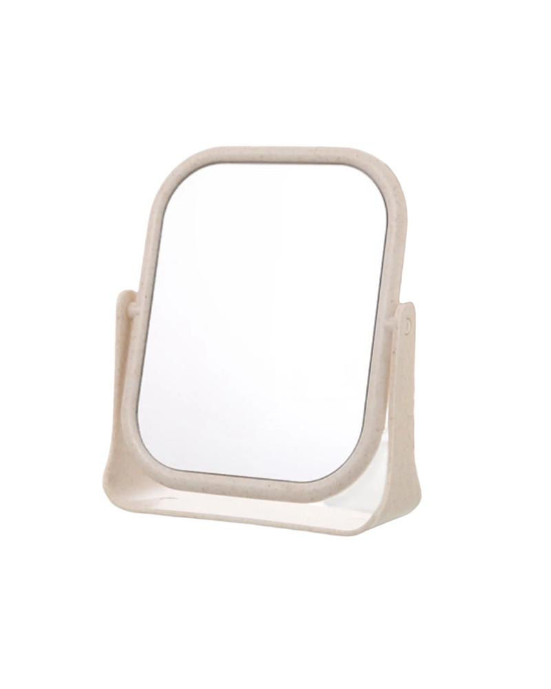 Espejo de mesa con forma cuadrada, ideal para colocar en tocador, baño o escritorio. Su diseño moderno y funcional ofrece una superficie reflectante clara y definida, perfecta para maquillaje, cuidado personal o rutinas diarias. Cuenta con una base firme que brinda estabilidad y comodidad de uso. Un accesorio práctico y versátil, apto tanto para el hogar como para uso profesional.
