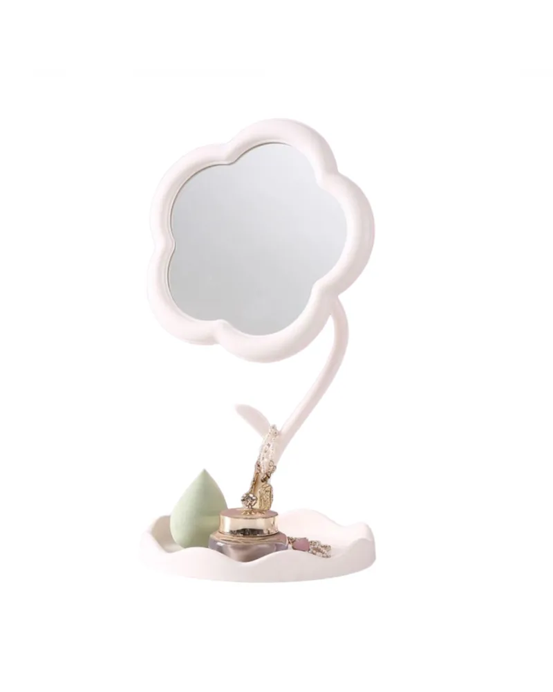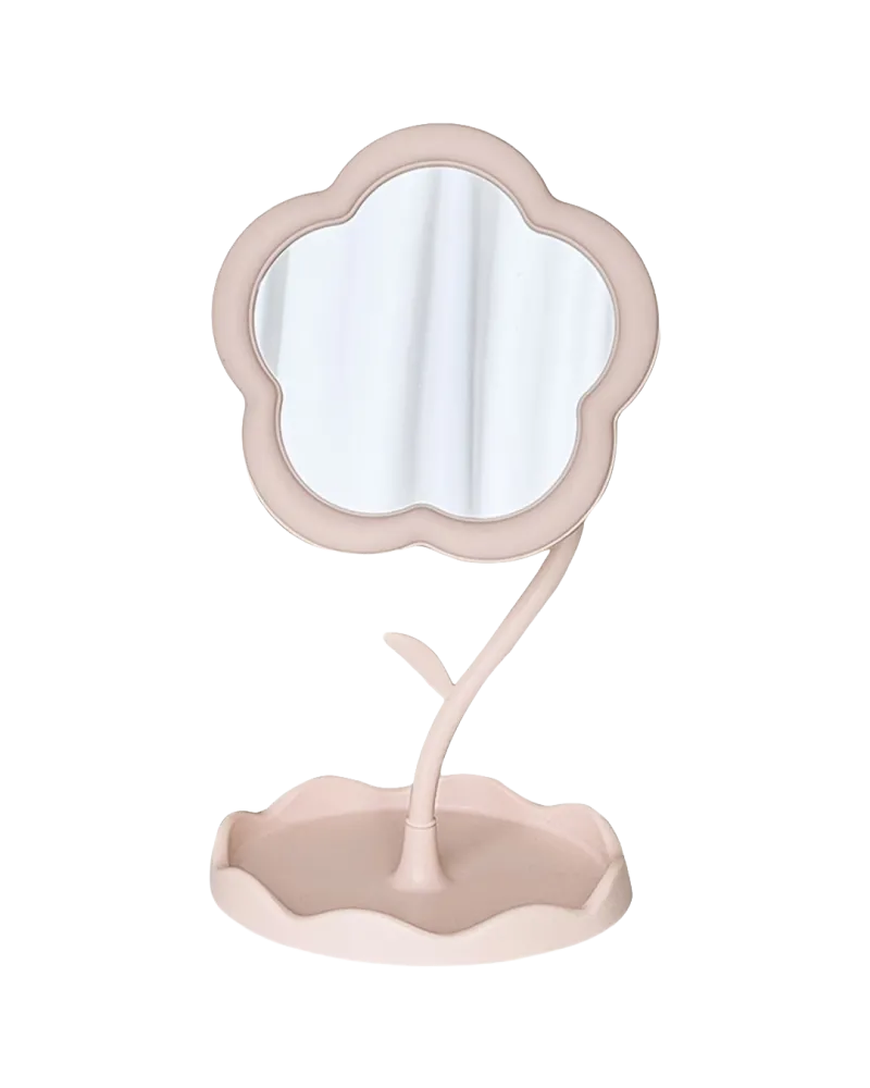 Espejo de mesa con diseño floral, ideal para maquillaje, cuidado personal o uso decorativo. Su tamaño práctico permite apoyarlo cómodamente sobre tocadores, escritorios o mesas de luz. Aporta un toque delicado y funcional a cualquier espacio, siendo una opción útil tanto para uso diario como para regalo.