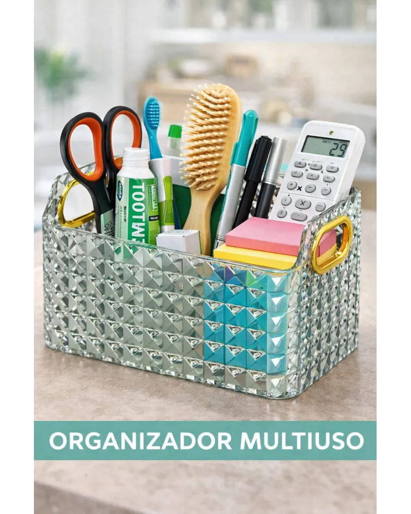 Organizador cuadrado, práctico y versátil, ideal para mantener ordenados pequeños objetos, accesorios, cosméticos o artículos de uso diario. Su diseño simple y funcional se adapta fácilmente a distintos espacios como el baño, el escritorio o el tocador, ayudando a optimizar el orden.
