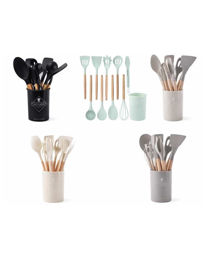 Práctico set de utensilios de cocina fabricados en silicona de alta calidad, ideal para el uso diario. Resisten altas temperaturas y son seguros para ollas y sartenes antiadherentes, evitando rayaduras. Sus mangos brindan un agarre cómodo y firme, facilitando la preparación de todo tipo de comidas.